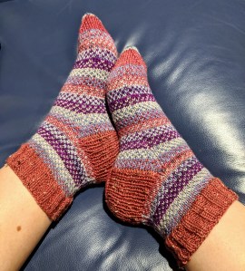 If making again I’d modify to make the heel flap a little longer and wider. I am utterly appreciative of a nicely cushioned heel flap, especially as I often wear boots. I haven’t made many shorty socks and as my favourite boots tend to be ankle length I wanted to add some to my collection. I’m very happy with these.